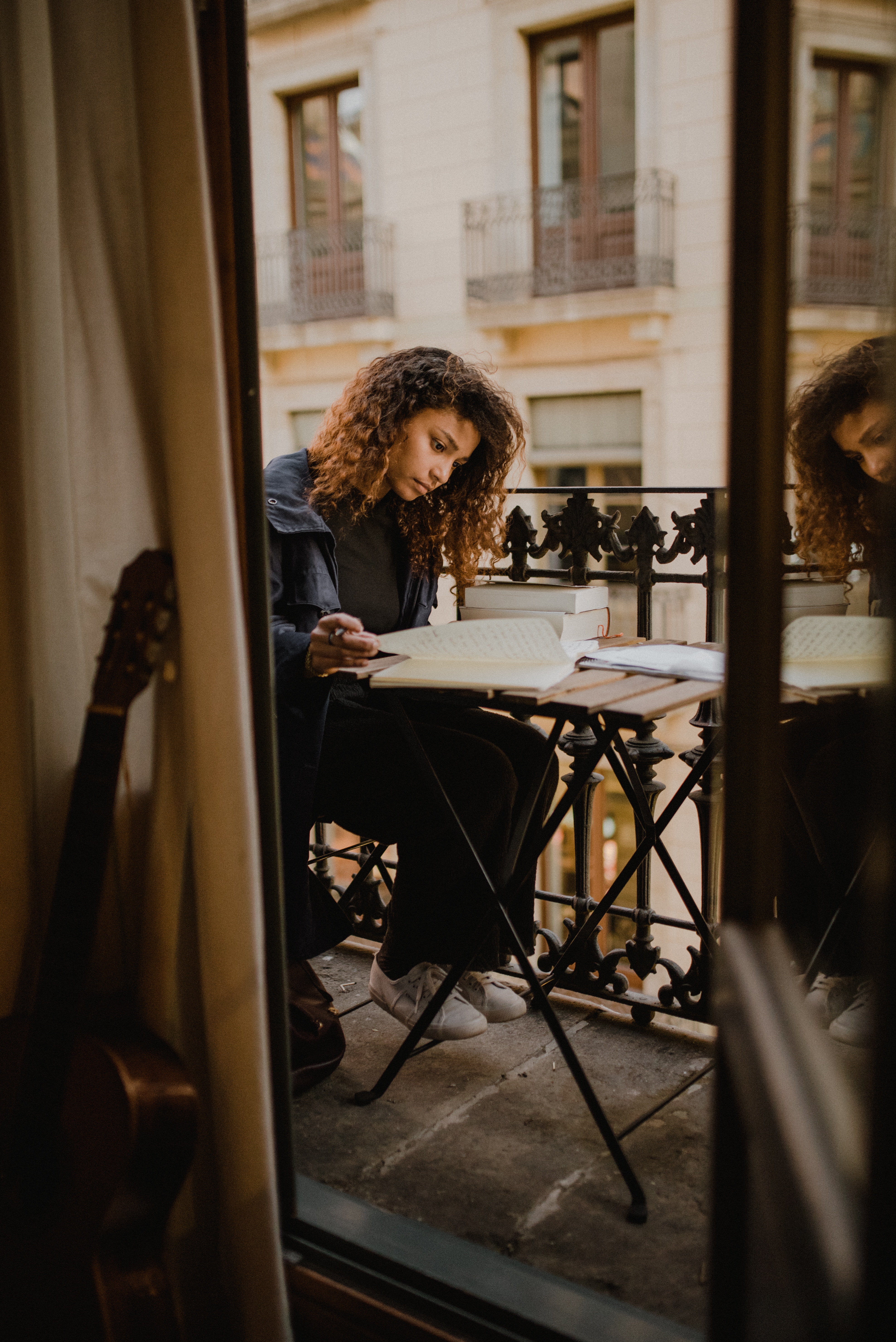 Escritora en un balcón